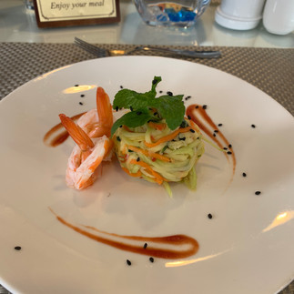 Once we returned back to the main ship it was time for free time- which for us that means bubble bath as always!!! Then again it follows with the same activities as the day before. Starting with another cooking class where we made a different type of spring rolls that were not fried this time. Inside was veggies, omelets, pineapple and shrimps if you want. I feel like I became quite the spring roller if I must say. Hopefully i can remember and make these back in the states when we return home. After cooking class began the HAPPY HOUR before dinner. For dinner the options were the same as the night before with different soups and salads to go with it.